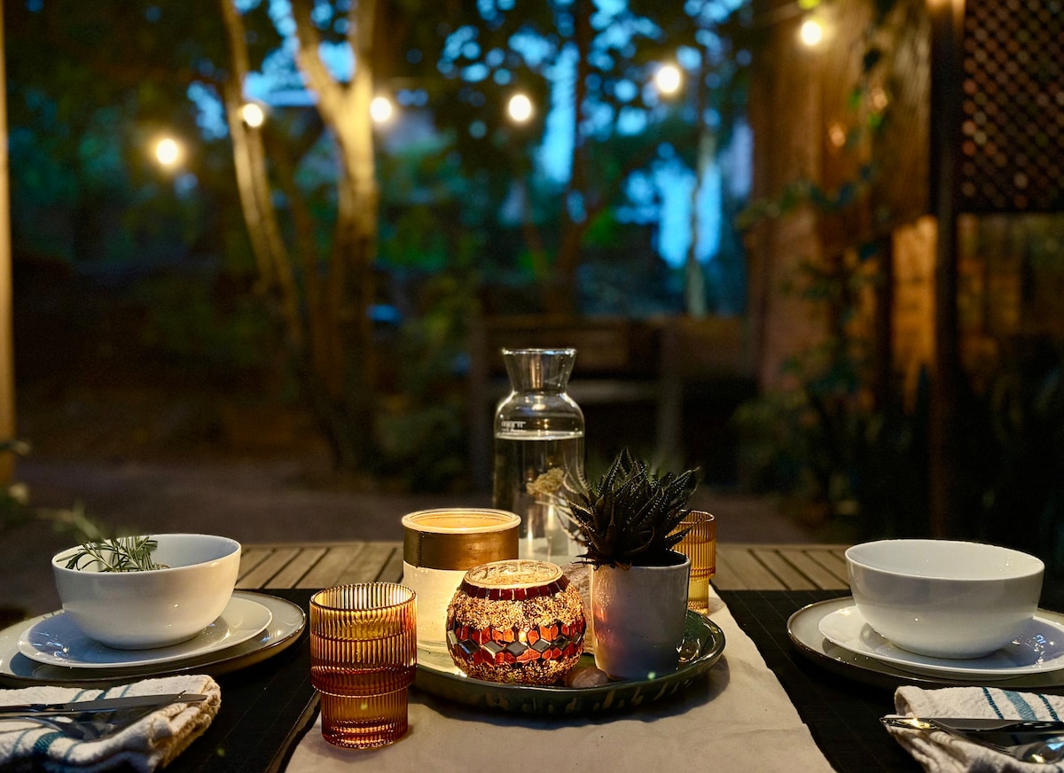 We want to invite you to this unique and romantic experience in our hand build Jungle Treehouse made of old school windows. Warm and cozy in the winter month due to our newly added heatblanket to your queen bed. Enjoy our garden and our new build infinity pool with stunning mountain views and breathtaking sunsets . You can hear the birds chirping all day long and fall asleep to the sounds of the jungle. Try to spot the owls & bushbabys wich are often sitting in the jacaranda trees around you.