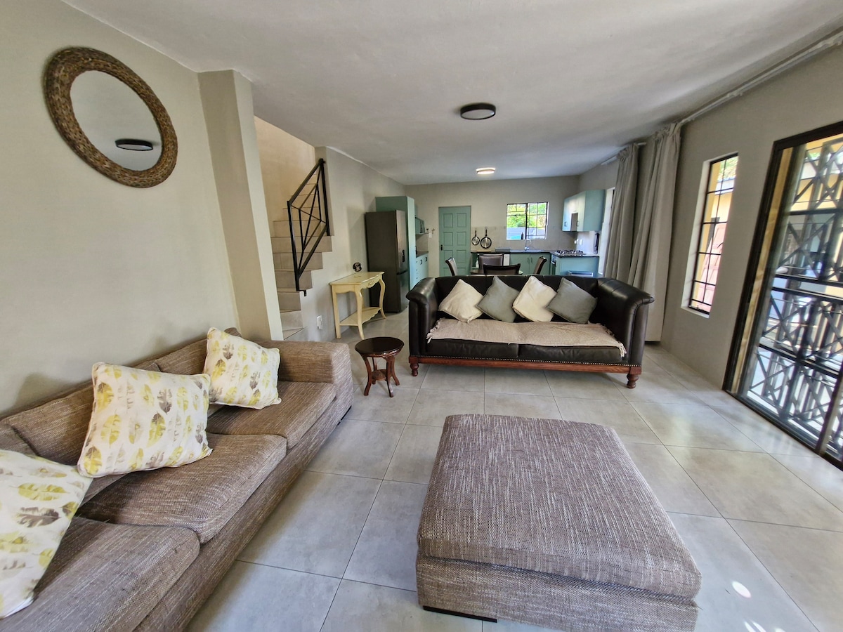 No load shedding problems, there’s a back up power and gas stove. Fully furnished house with a welcoming kitchen overlooking an air conditioned living/dining area, 3 bedrooms, 2 full bathrooms. The main bedroom is huge with air conditioning and ensuite full bathroom, it can accommodate an extra bed for a child. For Netflix/ShowMax bingers there's unlimited fast Fibre internet and DSTV. For outdoor lovers there's a child-friendly garden and pool. Big discount for long term guests!