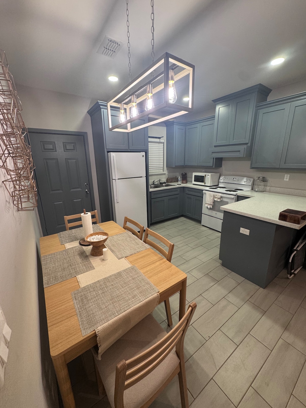 Escape to our tropical-themed retreat, designed for ultimate family fun and comfort. This delightful retreat sleeps guests comfortably 2 queen-sized memory foam beds and 2 twin beds. Stay connected with high-speed WiFi and enjoy a plethora of games including cornhole, an indoor golf pool game, darts, and a variety of board games. Indulge in outdoor dining with our BBQ grill and patio seating, or unwind indoors with a soothing bathtub and dedicated desk space. Contact us for SEASONAL DISCOUNTS