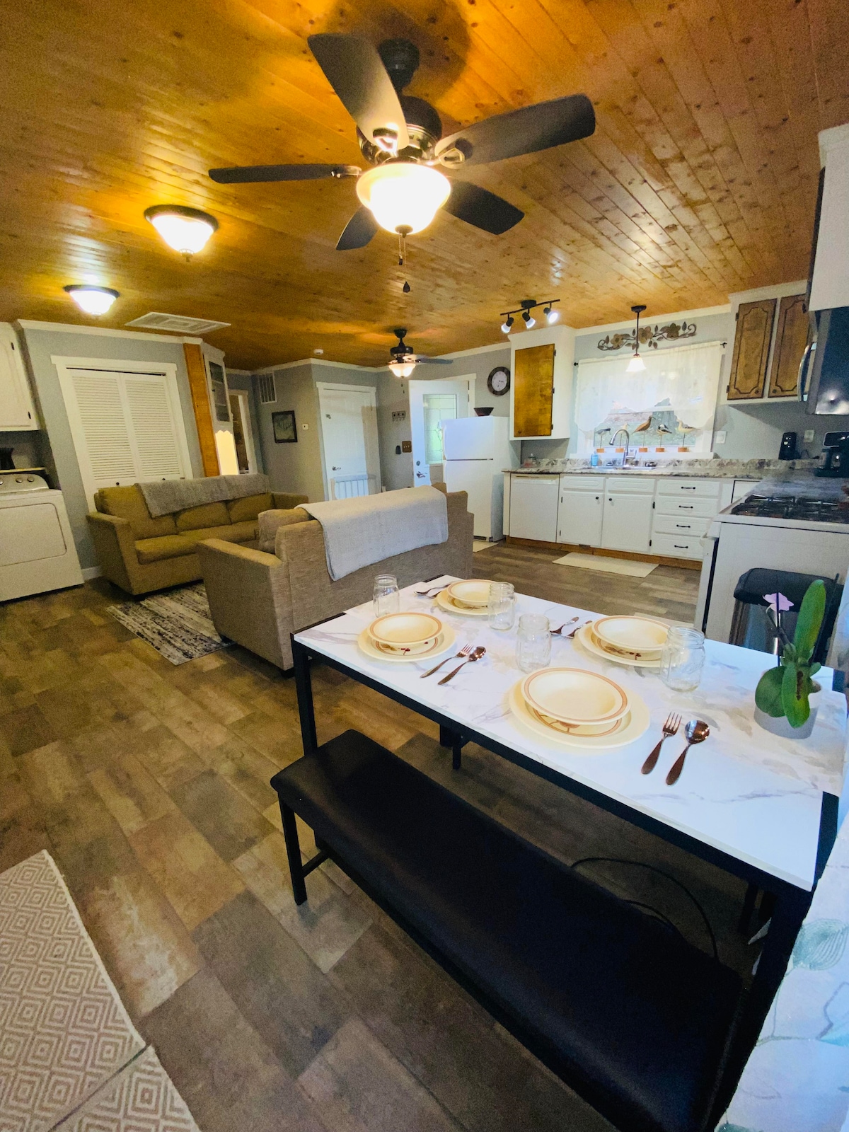 No cleaning fees! It's like a fairy tale! This Amish built barn has been beautifully finished to be the perfect place to relax on your trip. The large, private yard boasts a hot tub, propane grill, picnic table, and fire ring. Inside you'll find multiple easy-to-use electric fireplaces, smart TV, high-speed WiFi, a dedicated work space, coffee bar, and a fully-stocked kitchen all gorgeously decorated. Sleeps 2. Pet friendly.