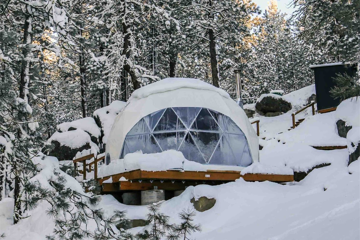 瀑布圆顶屋:带桑拿的高架球形地球屋露营