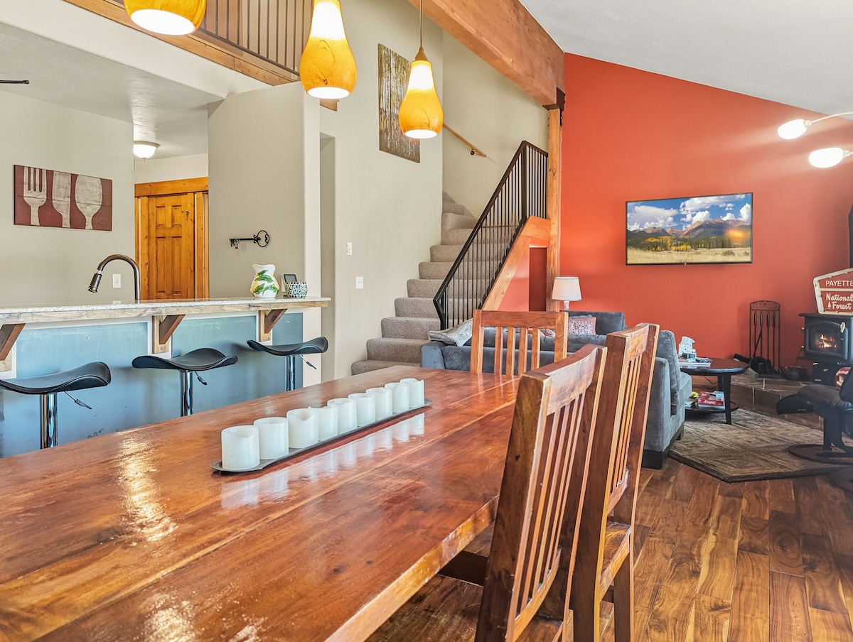 Centrally located in the heart of McCall, this spacious condo offers two master suites, a kid-friendly nook with twin beds, a hide-a-bed sofa, and 2.5 bathrooms—comfortably sleeping up to 6+. Walk to the lake, beach, restaurants, and shops. Enjoy an open-concept living area, fireplace, full kitchen, Wi-Fi, and in-unit laundry. A private two-car garage provides storage for gear and vehicles. The perfect year-round base for your mountain and lake adventures!