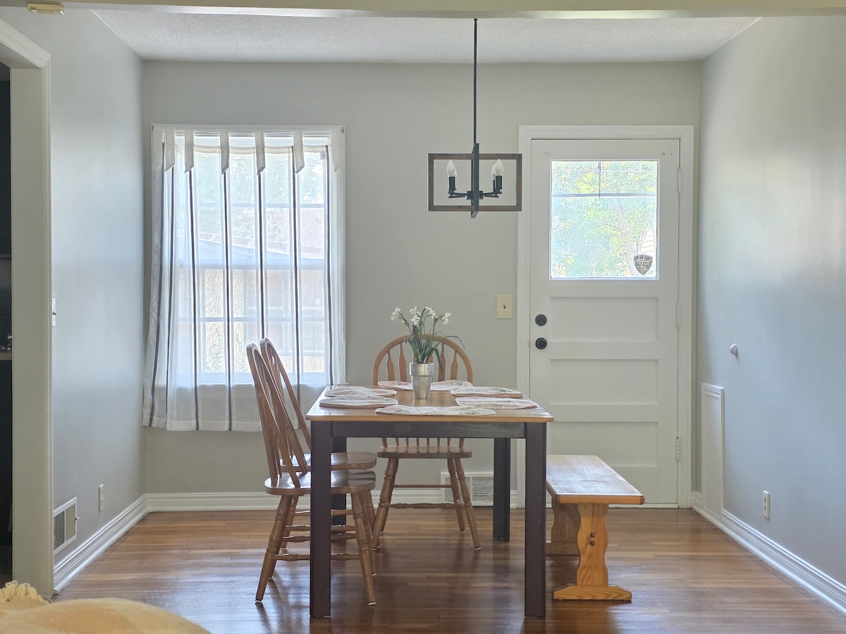 Enjoy a curated, comfort oriented experience at this centrally-located Wichita home. Conveniently located off Highway 400. Minutes from Friends and Newman University, downtown and Intrust Bank Arena. You’ll love the spacious kitchen access, comfortable living space, and beautiful bedrooms with queen size beds and black out curtains for optimal rest. Contactless check in. You’ll receive a custom check in code the day of your arrival.
