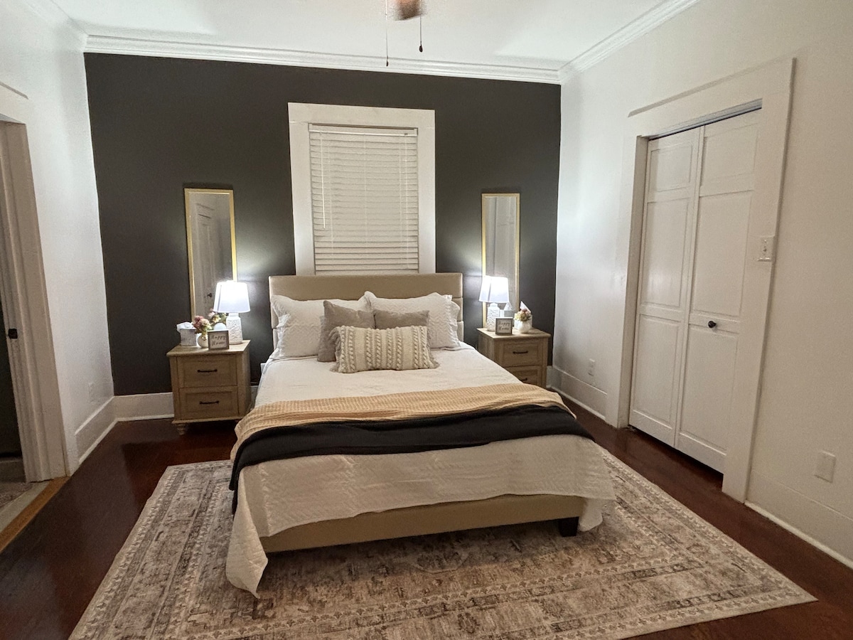 This stylish place to stay is perfect for 1-4 guests who value a location within walking distance of many downtown businesses, a cozy night by the fireplace, and preservation of historic homes. This private unit is newly remodeled and features quartz & granite countertops, all new bathroom fixtures, plenty of storage and closet space, beautiful hardwood, and modern furnishings. The unit offers a king bed and a pullout sofa that makes a queen bed! A washer/dryer/cooking tools provided.