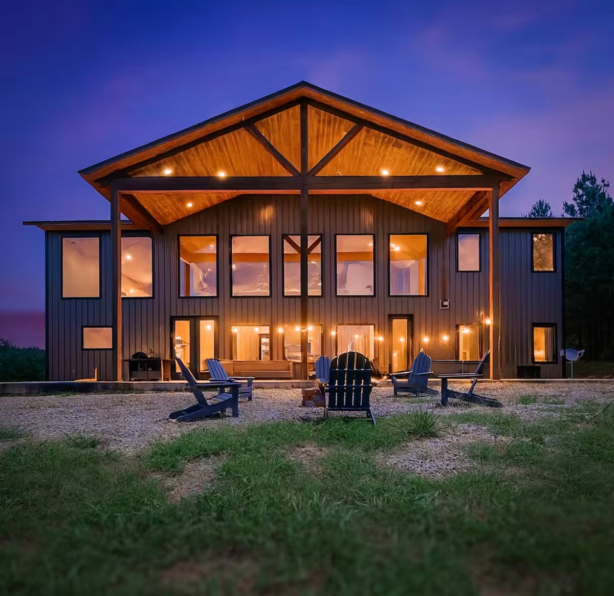 Escape to a luxurious pet-friendly A-frame cabin on a picturesque lake, nestled in an old-growth pine forest. This retreat features a fenced-in pet area, a hot tub, paddle boards, and trails. Enjoy a chef's kitchen and unwind in the spacious upstairs suite with a rain shower and freestanding tub. Cozy up by the fire pit with complimentary firewood and a s’mores kit or challenge friends on the arcade machine. With waffle mix for breakfast and robes provided, every detail ensures a cozy getaway.