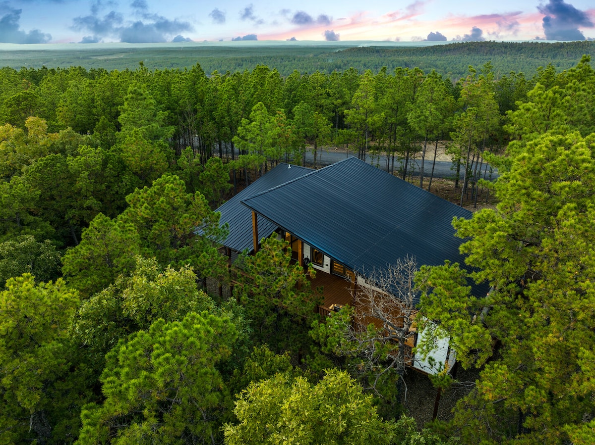 Modern Luxury Cabin | 2 King Suites • EV Charger • Pet-Friendly Discover The Modern—a stunning, design-forward cabin on 3.5 private acres in Broken Bow. Featuring soaring 18-ft ceilings, large windows, an all-white chef’s kitchen, wood stove, and 2 luxe king suites (one w/ soaker tub). Enjoy forest views, cozy up by the fire, and charge your EV onsite. Dog-friendly too! Book your unforgettable getaway today.