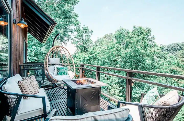 ⭐️ Brand New Treehouse suspended 16 ft high ⭐️Swinging Bridge ⭐️ Breathtaking Mountain View ⭐️Onsite half mile hike to Waterfall ⭐️Hot Tub on deck with View ⭐️Close to Asheville and Black Mountain ⭐️Hiking/Creek access on site ⭐️ 90 acres backed up to Pisgah Nat’l Forest ⭐️Small petting farm with goats, donkey on site ⭐️Marion recently voted #1 area to purchase vacation property by Travel & Leisure ⭐️ Black-out Shades on all windows and doors Stay up to date on IG @stillhouse_creek_cabins