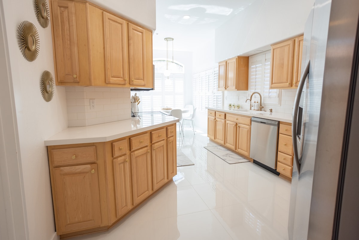Welcome to Scottsdale Great Escape, your spacious and sunlit retreat. The open layout invites an abundance of natural light, creating a warm and inviting atmosphere. Whether you're here to work or unwind, we've got you covered with high-speed WiFi in the dedicated workspace, a fully equipped kitchen, a delightful backyard patio with an outdoor grill, and a cozy sofa where you can unwind and enjoy your favorite TV shows. For added convenience, there is an attached garage.
