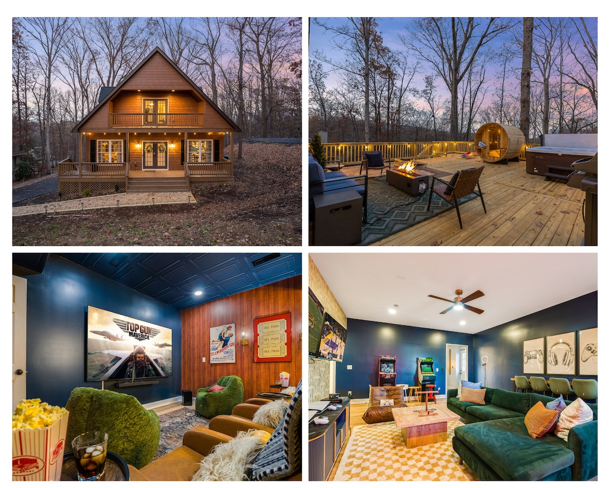 🔥Huge game room; ping pong, Ms. Pac Man, Simpsons, Pop-A-Shot basketball, dartboard & exercise bike 🔥4 bedrooms including dual king master bedrooms with ensuites (1 on main floor, 1 on lower level) 🔥Sparkling hot tub & sauna on private deck 🔥2 family rooms; Infinity game table (electronic board games for all ages!), 65" smart TVs, board games, fireplaces 🔥Fully loaded kitchen 🔥Dual bunk room with kids toys 🔥High speed WIFI 🔥Discounts for stays over 4 days 🔥2 min to water park