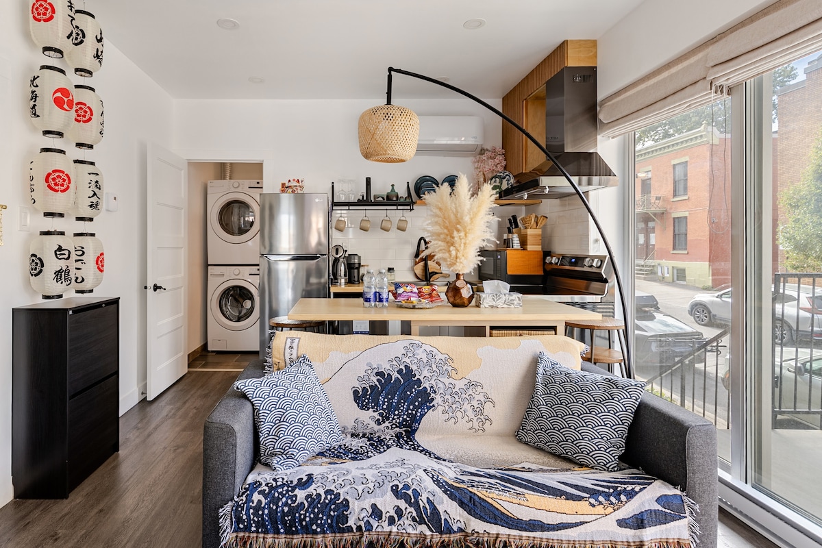 Be in the heart of Montreal’s action! This 2-bedroom apartment is right next to McGill University (affectionately called McGill Ghetto by locals), Place des arts (performance and cultural venue), and Quartier des Festivals (grounds of Montreal's famous international summer festivals, such as the Jazz Festival and Just for Laughs). Your “home away from home” will charm you with its warm and welcoming vibe. There is even a private parking spot waiting for your vehicle, if you bring one.