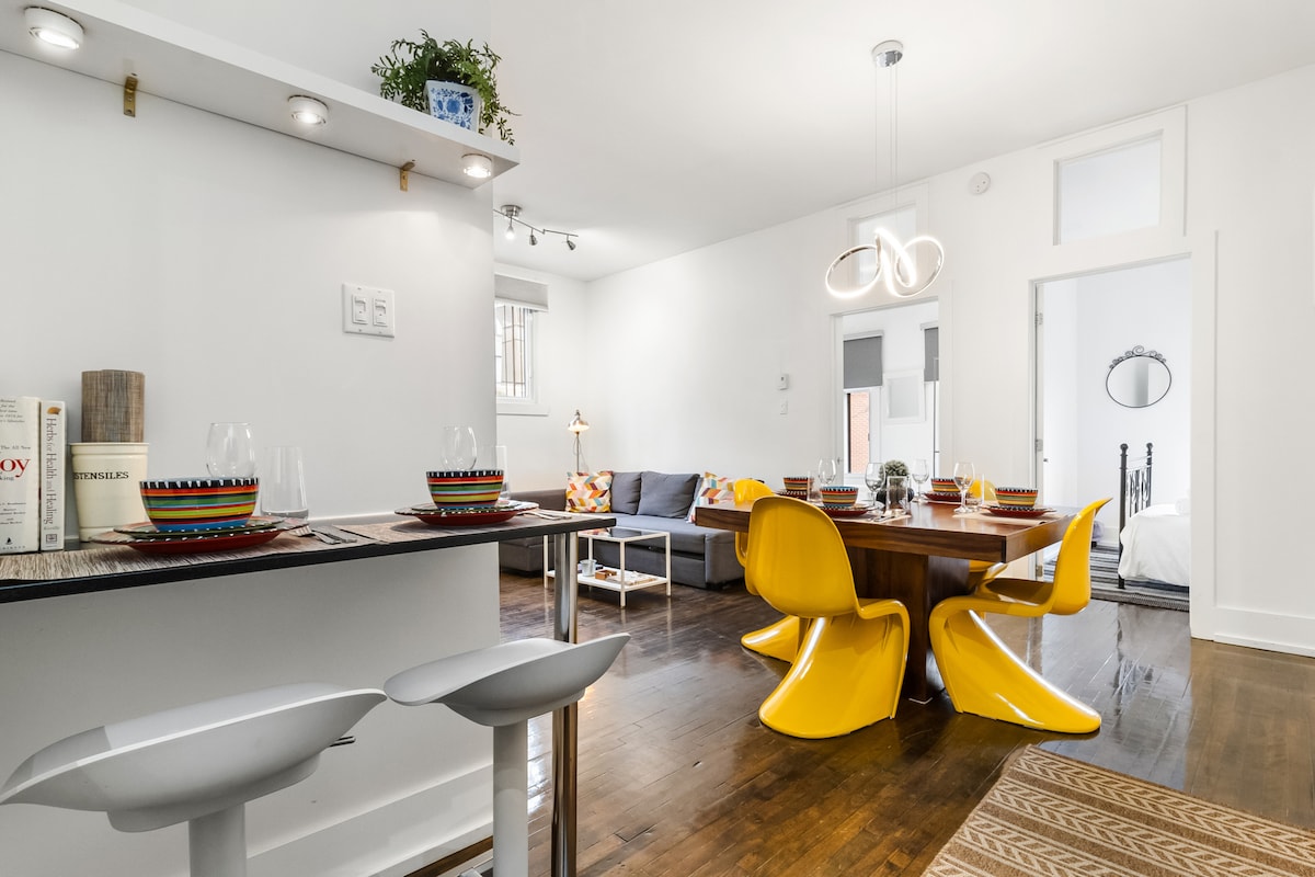 Indulge in the charm of the Plateau in this bright, stylish loft! Natural light floods the open-concept space, accentuating exposed brick walls, soaring ceilings, and modern design. Step outside and immerse yourself in a vibrant, artsy neighbourhood filled with trendy cafés, boutiques, and galleries. Walk to top restaurants, theatres, grocery stores and markets, metro stations, bike paths, and Mont Royal —everything you need for an authentic, unforgettable stay in the heart of the city!🚲🍽✨