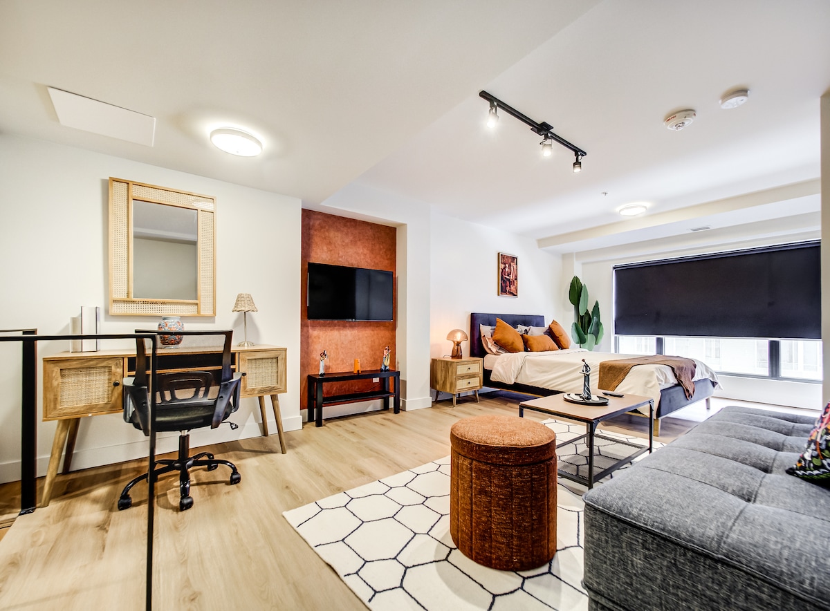 Discover urban comfort in the heart of Montreal in our modern studio, just a few minutes' walk from the Berri metro station. Ideal for business trips, its Zen-inspired decor creates a soothing atmosphere. Elegant and functional, our studio offers an unforgettable Montreal experience. Also enjoy fast Wi-Fi, a gym, and a rooftop terrace with stunning views. Book now to experience the charm of urban living.