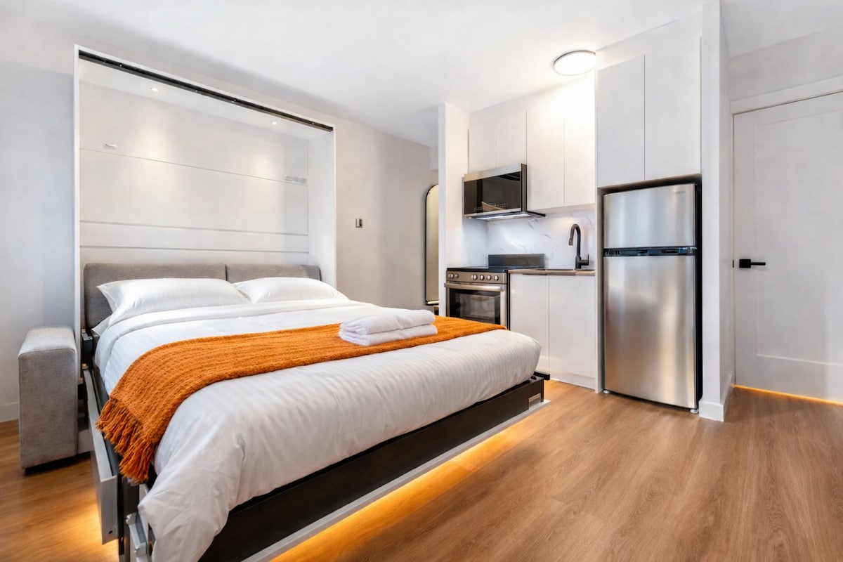✅️Steps from the best of Montreal 5 min from Place des Arts, 10 min from Centre Bell, 15mins walk to Old Port, 1 block from UQAM, 10 min walk McGill University ✅️Fully equipped & clean studio apartment in the Heart of Downtown Montreal! ✅️Spacious private balcony, on-site gym, and coworking space ✅️No Cleaning Fees ✅️Close to great shops, restaurants, museums, attractions, nightlife ✅️Perfect for solo travelers & couples ✅️Self-Check-In