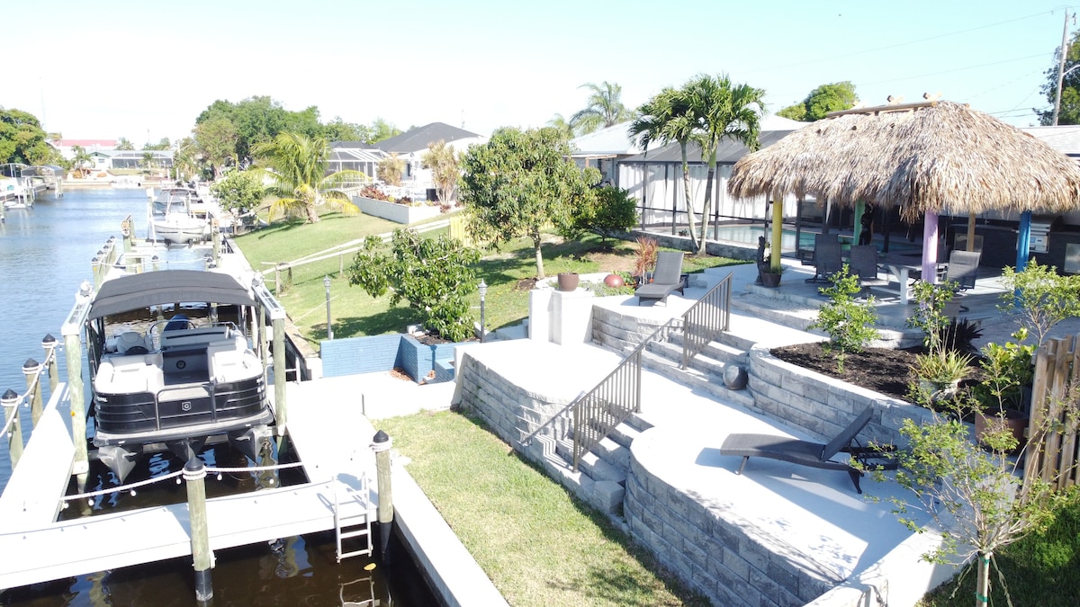 This spectacular 2358 sq. ft. Cape Coral waterfront home will exceed your expectations with its luxurious updates and abundant amenities. Located in a quiet neighborhood, but within minutes to shopping, grocery, restaurants, and beaches! Enjoy a large lanai with a heated pool and spa, outside TV and built-in grill. Includes kayaks, fishing poles, beach items, stroller, private driveway parking, Wi-Fi and printer. Gulf access with boat dock.