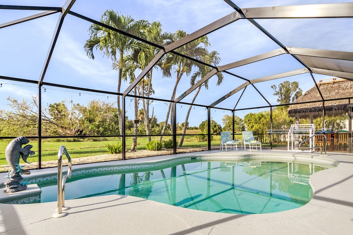 Luxe Riverfront Retreat~Pool~Spa~Bar~Tropical Yard