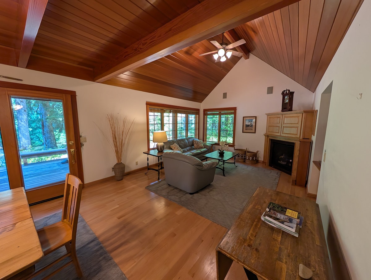 Small Cabin located near Lake Creek Lodge and Fire Station/Community Hall on the main road into Camp Sherman. This cabin is located on 1 acre property with grass and park area that includes, campfire area, horseshoe pit and pond (no swimming). Bike & hike trail adjacent to the store /river Perfect getaway, great condition with granite island and counter tops, knotty alder cabinets. Over 300 DVD collection. Wi-Fi Starlink, if remote working is necessary. GUESTS MUST CLEAN THE CABIN!!!