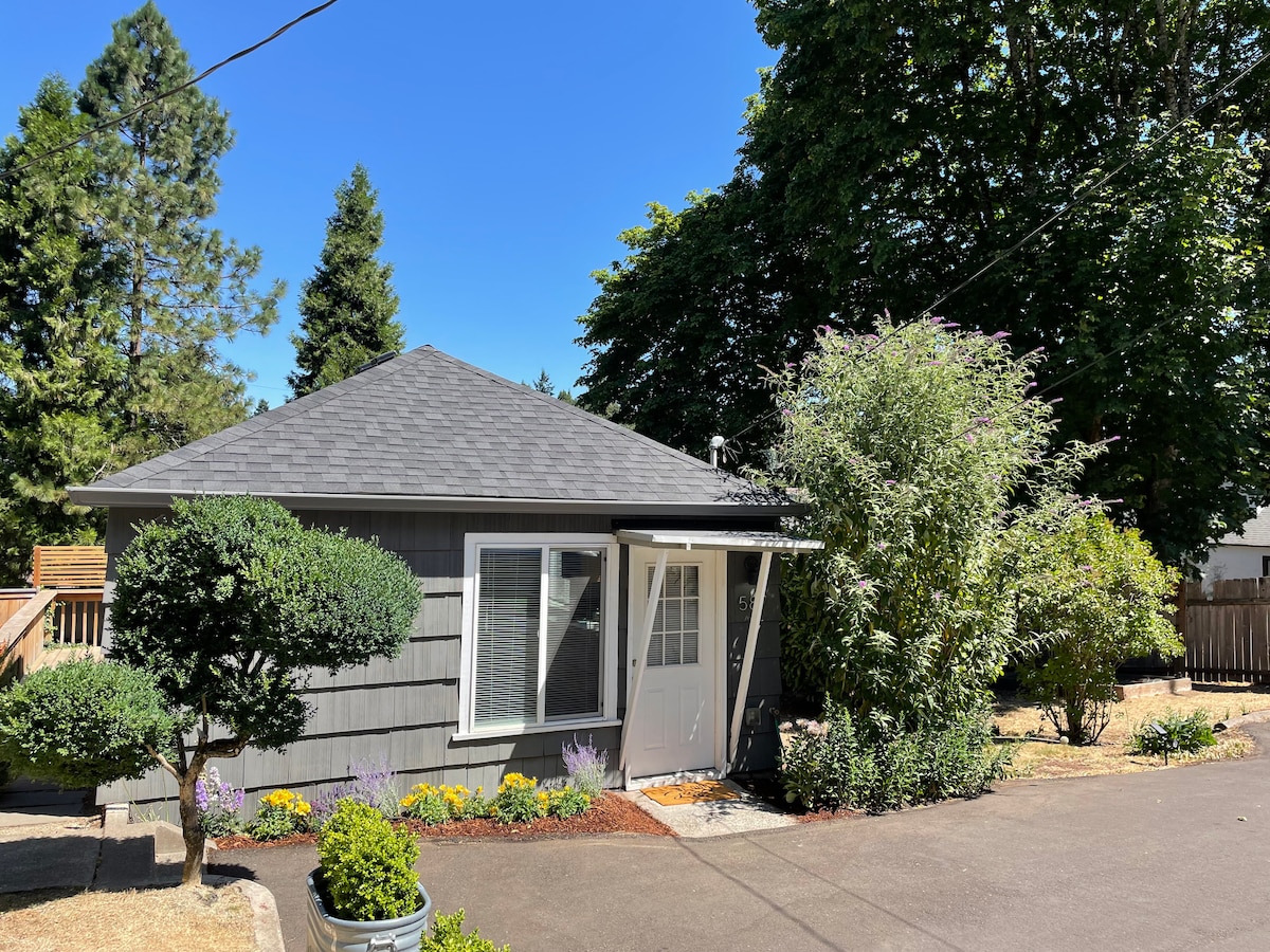 Dog friendly, Beautiful studio cottage with on-street entrance, centrally located in the heart of Eugene's busy Whiteaker neighborhood. Private back yard w/ hot tub and an extra high security fence. Our block hosts many unique restaurants, bars w/ music venues & shops. A short walk to the river w/on street parking & a bus stop right out front! neighborhood is home to many beautiful, wild, bustling locals & tourists. A slice of real downtown life in Oregon’s second biggest city.