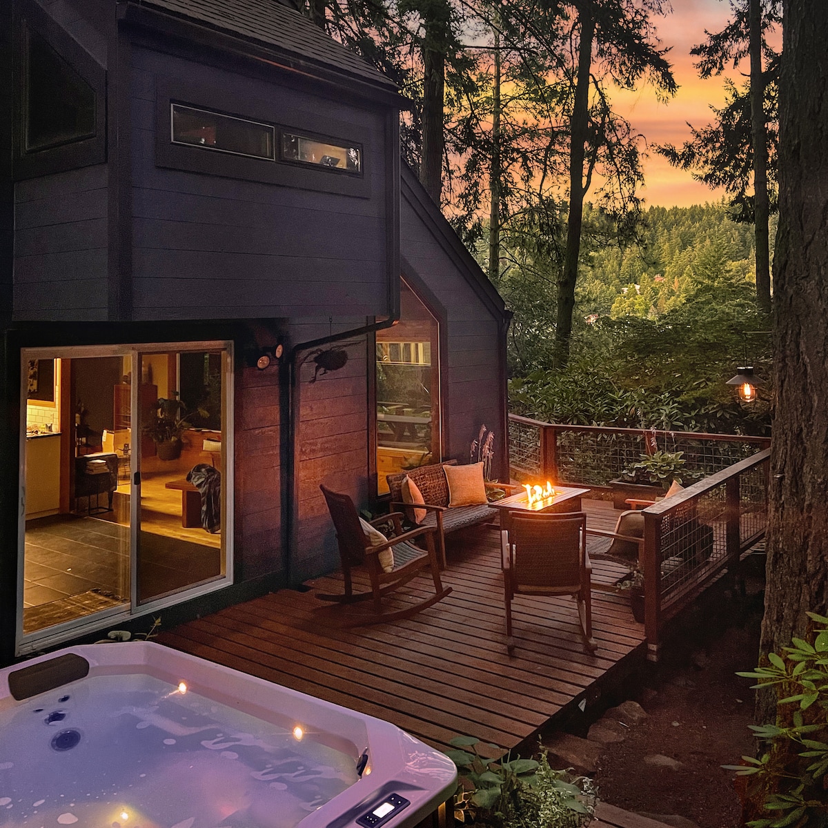 景观热水浴缸/树林中的奢华/游戏室