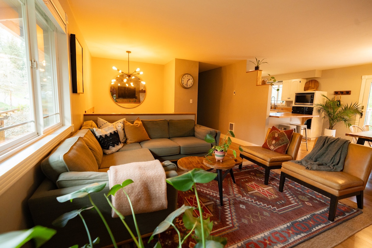 Hit the hot springs on your way home from skiing! Retreat to the land of big trees, ferns, and the McKenzie River. The cottage is situated on an acre of riverfront property, with 3 bedrooms, 2 baths, and a covered porch that is ideal for drinking coffee and taking in the river views. The home is equipped with a large kitchen and dining room to host family-style meals and gatherings. Whether you’re here to ride singletrack trails, raft the river, or spend quality time with family and friends.
