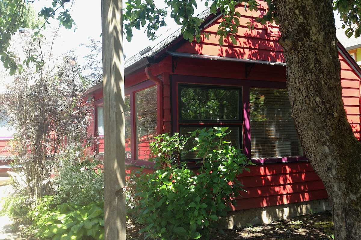 Charming 250 sq. ft. South Eugene bungalow guest loft with private exterior entrance (10 steps up), ideal for 1 guest. Full private bathroom with sink, toilet and shower.* Queen-size cabinet bed with comfortable memory foam mattress, bamboo cover, quality linens. *Though bathroom ceiling height is 7’6” at highest level, please note that angled ceilings in shower may provide less-than-ideal head space for guests on the tall side. Shower head is removable/hand-held for added convenience.
