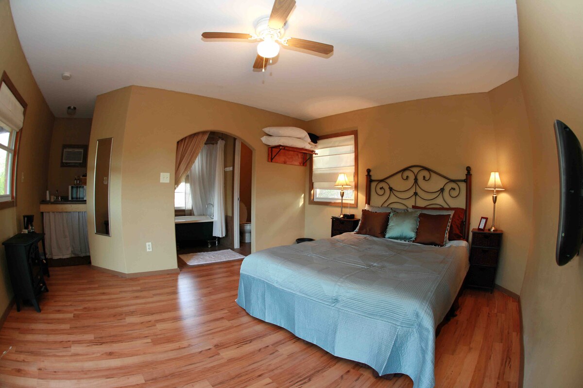 Longhorn cabin in 3 acre tiny home resort w pool!
