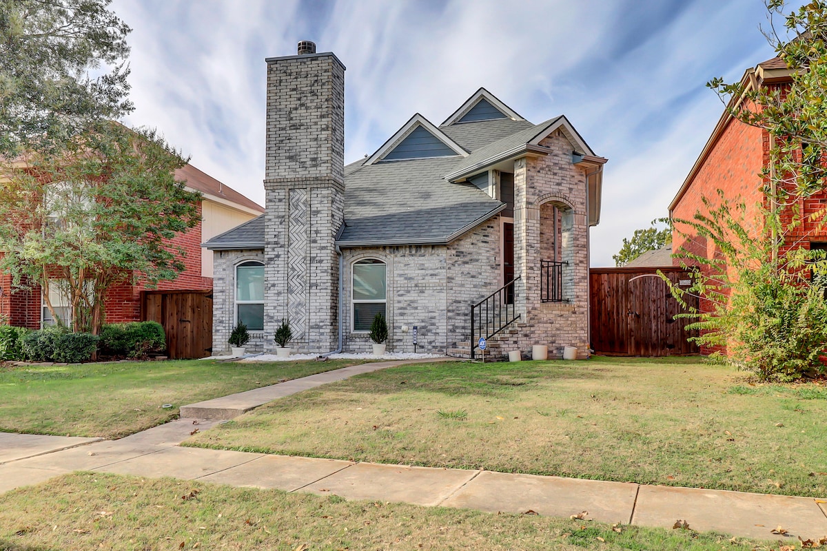 Welcome to our luxurious family-friendly Airbnb! Our home has all the amenities you need for a comfortable and enjoyable getaway with your loved ones. Watch movies and TV shows on the huge 85-inch screen, relax in the hot tub, or play in the grassy backyard. We even have a cozy reading nook for quiet moments. Located near Legacy West, The Star, RoughRiders Baseball, and many shopping malls, you'll never run out of things to do. Book your stay today and start planning the ultimate vacation!