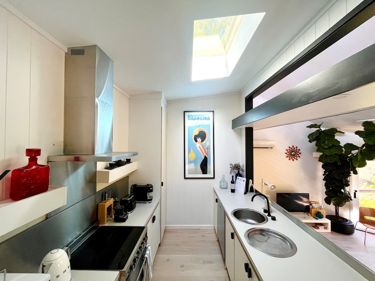 On the edge of a forest The Gallery is simply stunning. Soak in the huge freestanding bath while watching your favourite TV show or movie. Relax by the log fire, enjoy a romantic dinner in the fully equipped kitchen or take a stroll through the forest sculpture trail. It is the perfect place for a romantic getaway. You may find you don't want to leave but if you do there are over 80 nearby cellar doors to visit, amazing restaurants to dine at and beaches and trails to explore.