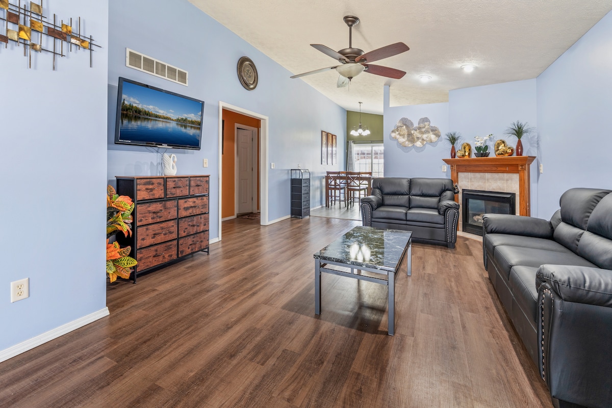 Forget your worries in this spacious and serene space. With plenty of unique spaces to relax or work, Holiday Haven is perfect for your weekend getaway or long work trip! Two huge bedrooms each with their own full bath and king bed provide you with ample space and privacy. The plush couch is perfect for lounging or a sleep space for your 5th and/or 6th guest! You are also close to favorite local restaurants and across the street from a quiet park and country club, perfect for a peaceful walk!