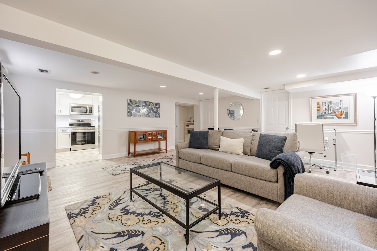Cozy, private basement ideal for families, business trips, or quiet getaways. Includes queen bed, 68" sofa bed, private bath, family room with dining area, coffee bar, and smart TV in both the family room and bedroom. Enjoy fast Wi-Fi, shared washer/dryer, private side entrance, and driveway parking. 20-min walk to Metro, near shops, dining, and parks. Quiet Rockville neighborhood with easy DC access. Guests love the space, comfort, and convenience!