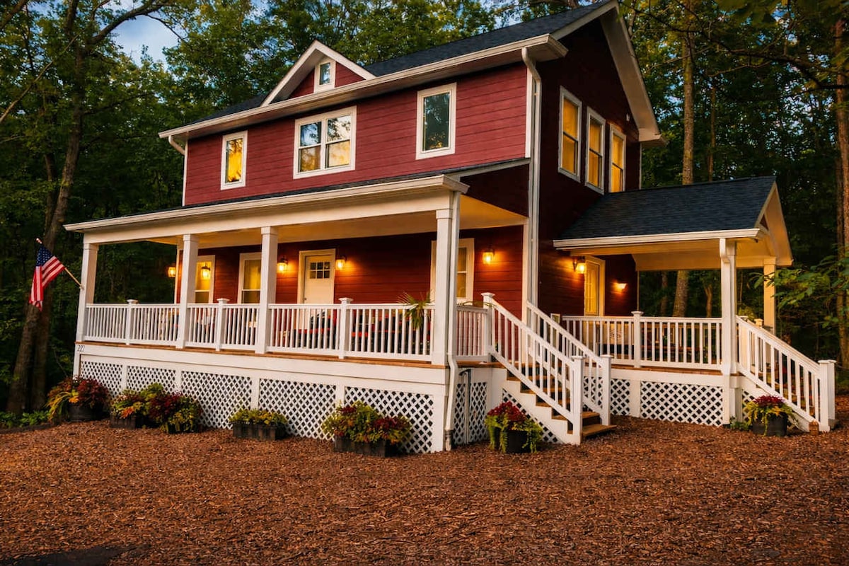Easily escape to the woods on a 14 acre homestead that's only 20 miles from DC. Surrounded by the forest with amazing views, designed by artists, this secluded hideaway is a celebration of Nature and Art. Recharge amongst these ancient trees and all the singing critters that soundtrack the night. Enjoy a fire, frolic in the fields, read on a hammock, strum a guitar, and feel the pressure of modern life melt away. Explore the many bucolic trails nearby. Perfect for retreats and workshops.