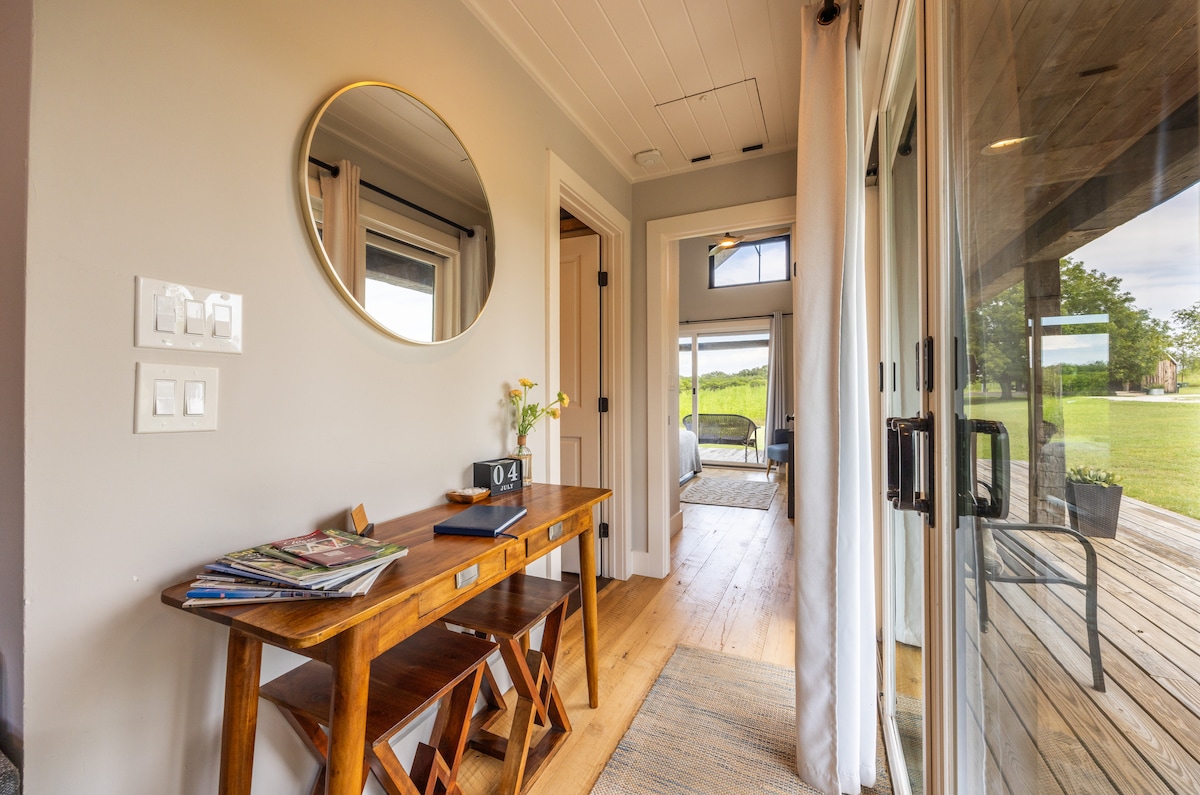 This unique home started as two shipping containers–20' and 40'. We insulated and paneled the interior in pine shiplap and trimmed it out in 100+ year old barnwood. The outside is clad with cedar siding with spacing to allow the original container to still be seen. Entry is through the original container doors or a side entry with a standard door. We removed the steel panels from the doors and replaced them with picturesque full glass. The fun rooftop deck is surrounded by a custom cable railing system and lit with LED lights under the rail that gives the deck a beautiful glow at night. The deck and upstairs bedroom is accessed by an exterior spiral stairway. We live right around the corner so are available for anything you need including any questions on the house or your time in Waco. We’ll try to meet you to show you the house if possible but you can also check yourself in with the passcode we’ll send you the day of check-in. The location is a safe rural neighbourhood, just north of Waco and close to I-35. Surrounded by trees, cattle graze nearby. Guests are also welcome to use the lawn. Shop and eat in Homestead Cafe and Craft Village. only 3 minutes away by road. You can park right at the house and Uber is available.