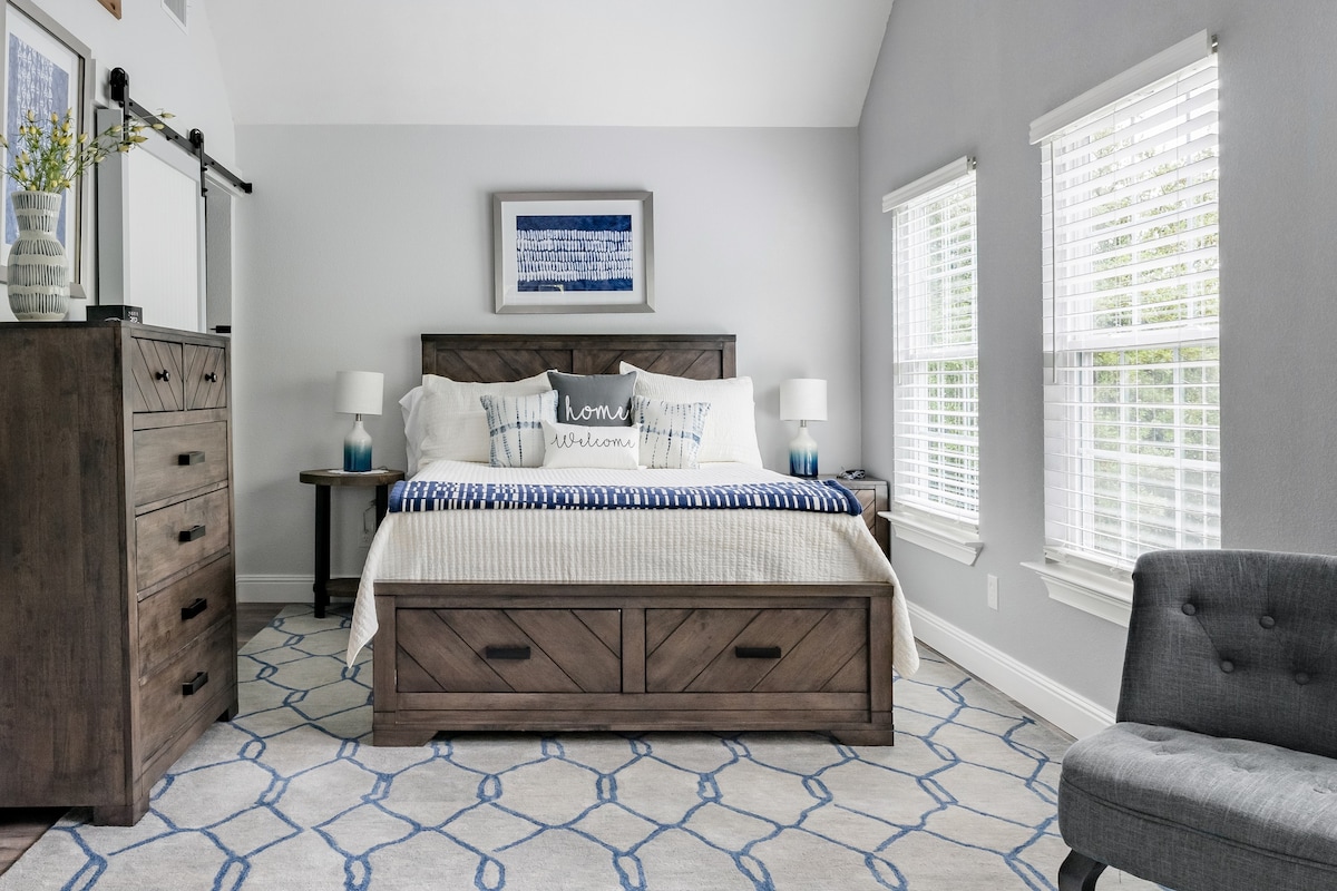 Enjoy a stylish experience at this centrally-located bungalow! This is minutes away from Top-Golf, the Magnolia Silo District, shopping, and food! On an acre in town, secluded yet close to everything! Come enjoy a stay whether you are getting out of town for vacation, or for a work-trip this little bungalow is the perfect spot for you! We are excited to invite you into this space to enjoy this town as much as we do!
