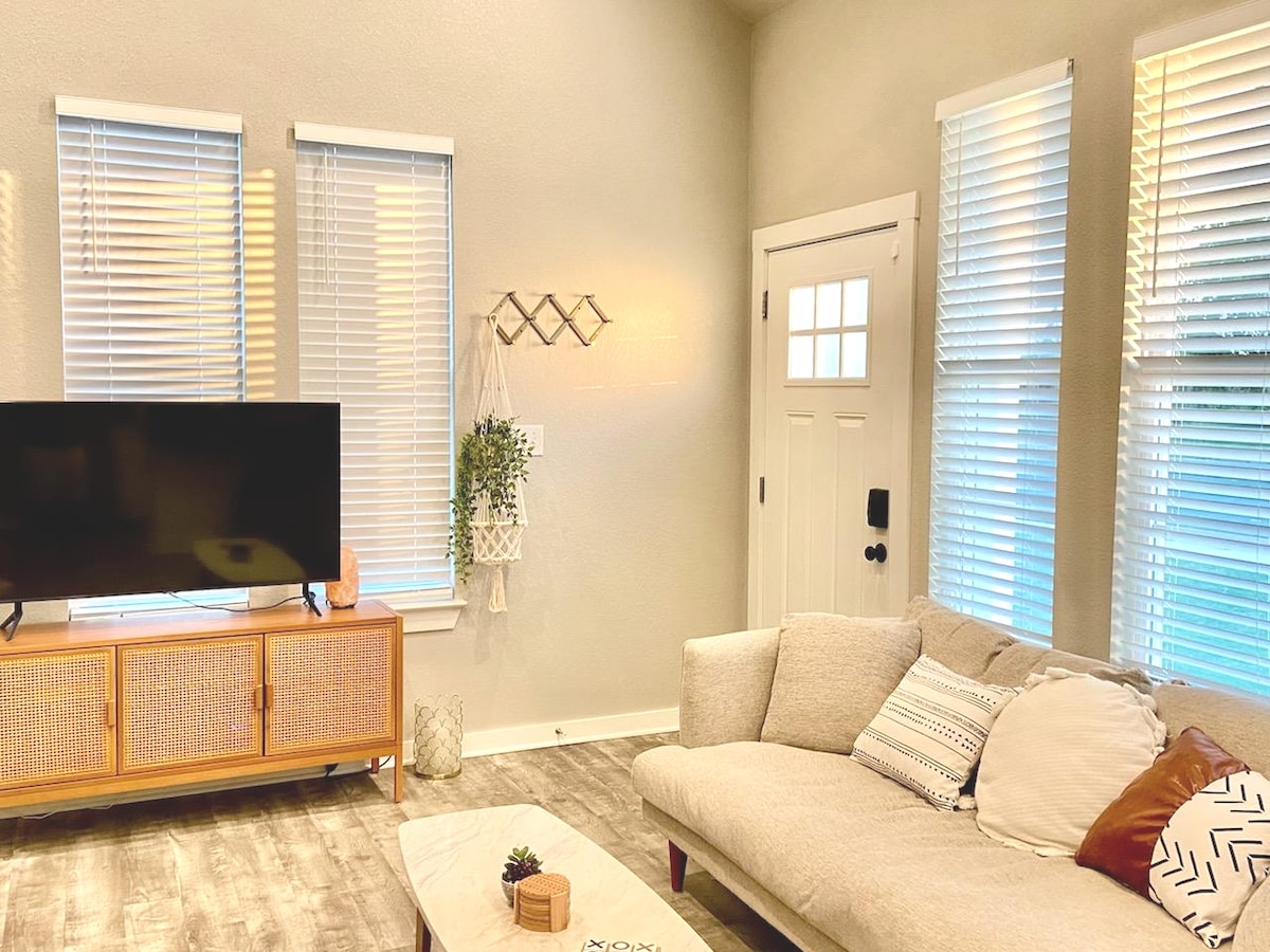 Enjoy a stylish experience at this centrally-located bungalow! This is minutes away from Top-Golf, the Magnolia Silo District, shopping, and food! On an acre in town, secluded yet close to everything! Come enjoy a stay whether you are getting out of town for vacation, or for a work-trip this little bungalow is the perfect spot for you! We are excited to invite you into this space to enjoy this town as much as we do!