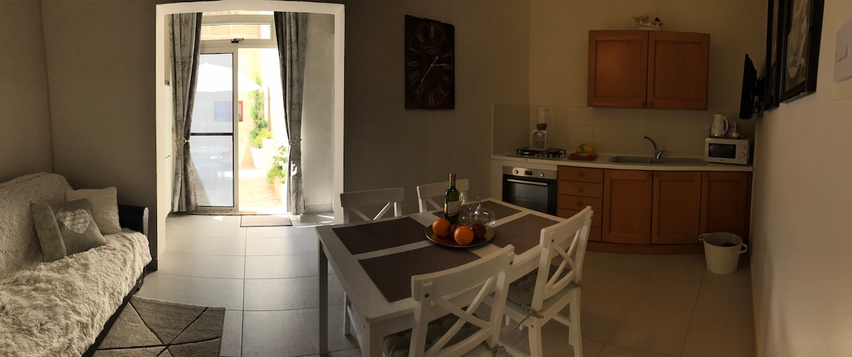 A ground floor studio fully-equipped with kitchen,en-suite,double bed, washing machine and air conditioning. Siggiewi is a village set in the countryside, 12 min. away by car from Luqa International Airport and few kilometers away from Mdina, Rabat,Dingli Cliffs,Zurrieq& Hagar Qim.Direct Bus 201 to&from Airport stops 2 minutes away from the studio. Ghar Lapsi (bus109) & Blue Grotto (bus201) are the nearest beaches- you can easily take a dip in the clear waters and enjoy views of Filfla.