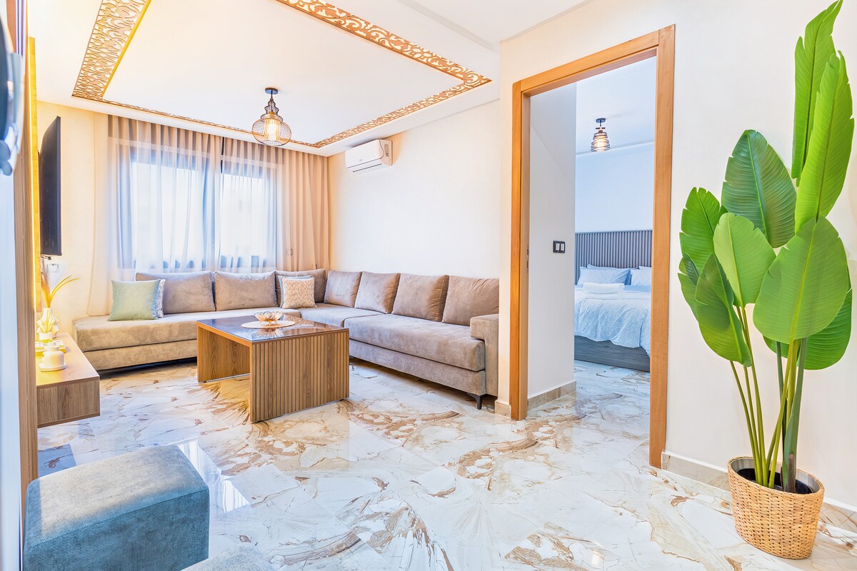✨L'appartement Panoramique à les jardins bleus se caractérise par son design à la fois moderne et élégant, chaque élément étant soigneusement conçu pour vous garantir une expérience sans pareille ✨Son emplacement central ✅ Appartement avec vue panoramique sur la mer et à proximité de : ✅ 1 min de la plage de Martil 🏖 et sa fameuses corniche ✅ 5 min de la Plage de Cabo Negro 🏝 ✅ 4 min de Ikea et KFC 🍗 ✅ 6 min de Marjane et McDonald's 🍟 ✅ 1 min restaurants cafés, commerces