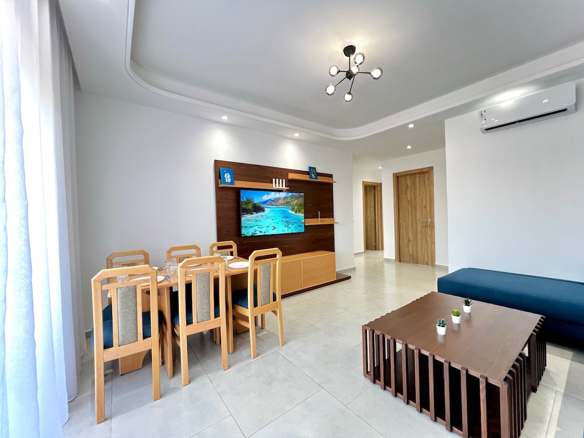 ✨L'appartement Panoramique à les jardins bleus se caractérise par son design à la fois moderne et élégant, chaque élément étant soigneusement conçu pour vous garantir une expérience sans pareille ✨Son emplacement central ✅ Appartement avec vue panoramique sur la mer et à proximité de : ✅ 1 min de la plage de Martil 🏖 et sa fameuses corniche ✅ 5 min de la Plage de Cabo Negro 🏝 ✅ 4 min de Ikea et KFC 🍗 ✅ 6 min de Marjane et McDonald's 🍟 ✅ 1 min restaurants cafés, commerces