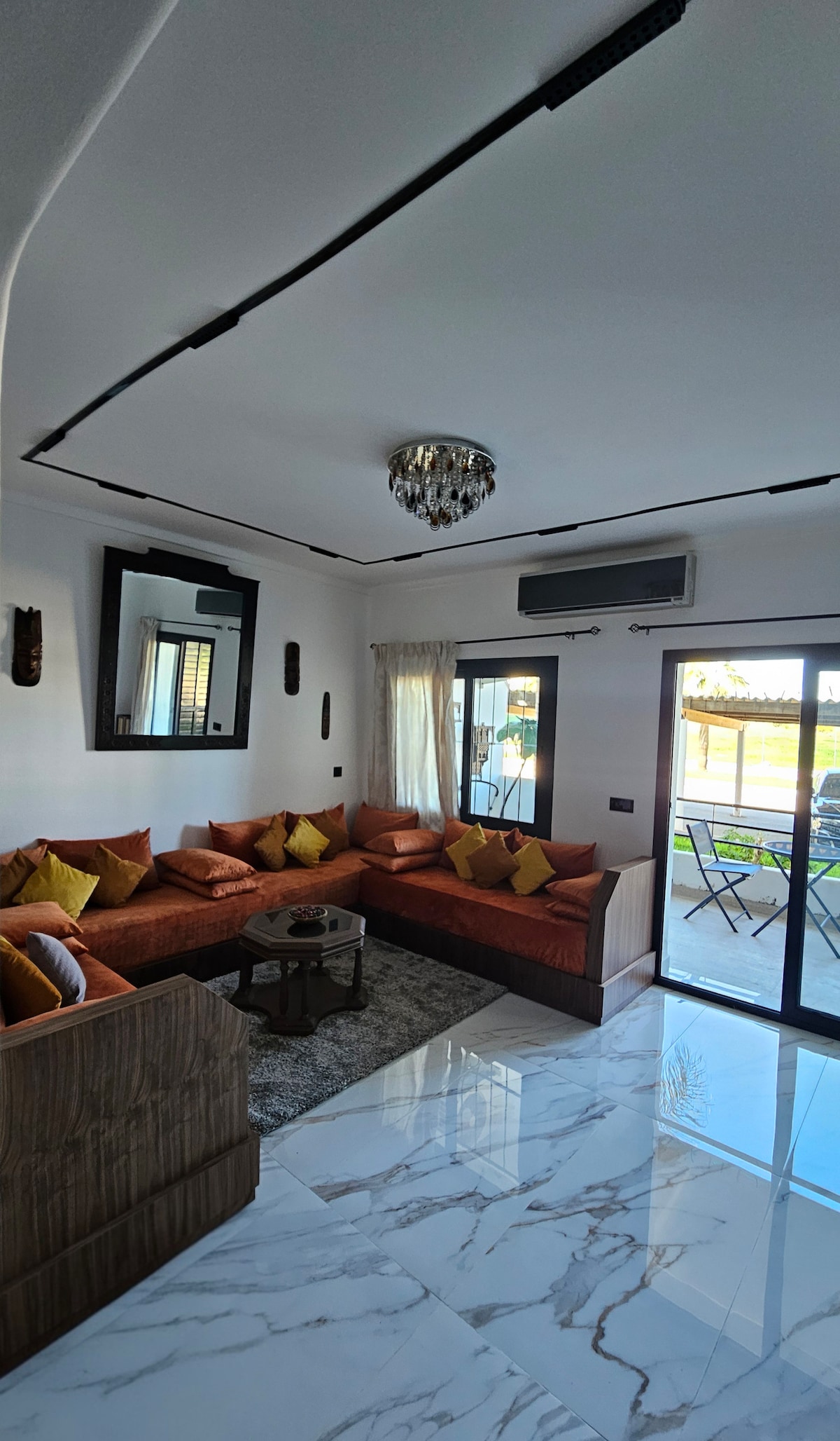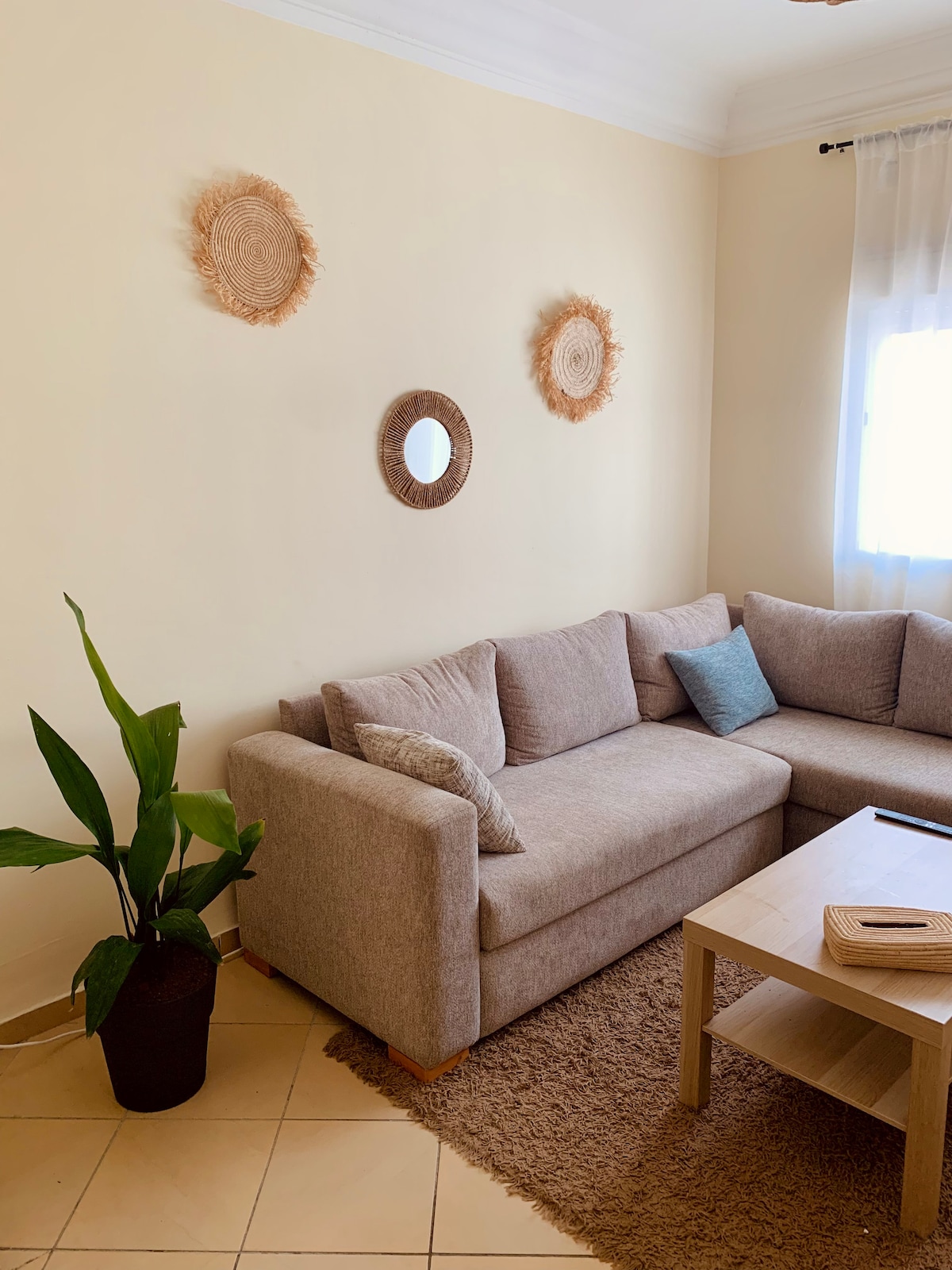À louer : bel appartement ensoleillé à Martil -Salon lumineux avec Smart TV, chambre parentale avec armoire, chambre enfants. -Wi-Fi haut débit, Netflix et Bein Sports. -À moins d’1 min de la station de bus vers Tétouan et la plage. -À 10 min de la plage à pied, proche de BIM, CIH, Total, Wafacash, et à 5 min de l’ENES. -Parking gratuit à proximité. -Quartier calme et sécurisé, idéal pour les visiteurs découvrant Martil.
