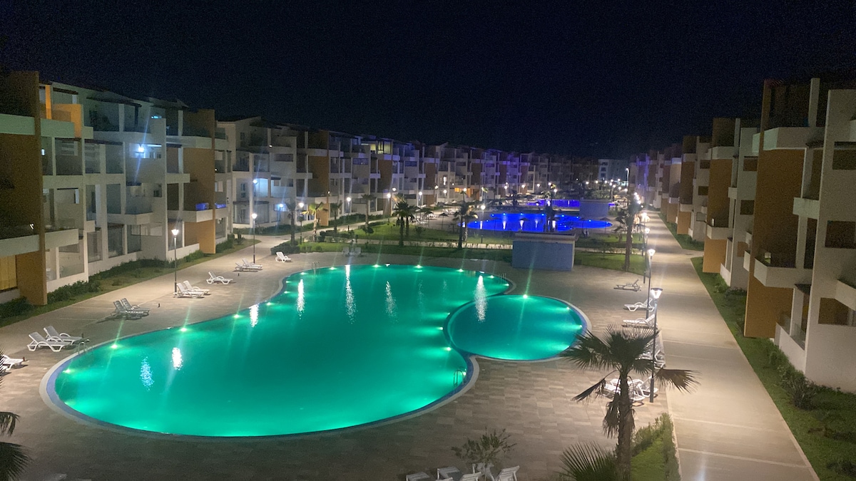 ( UNIQUEMENT POUR FAMILLE MERCI ) Très beau appartement climatisé au RDC c dans un beau complexe perla del mar à martil collé à la fac des lettres -sciences. vue piscine avec une cuisine américaine bien équipé et un salon canapé L confortable même pour dormir !! *profiter de vos soirées film entre famille ou amis(es). Avec un vidéo projecteur sur un écran de 2 mètre de largeur *Chambre avec lit double, matelas de qualité confortable Piscine de 9heur à 19h sauf les lundi WIFI haut débit
