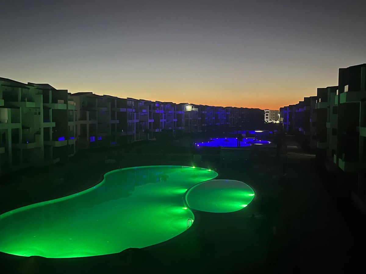 La résidence est équipée de : -Caméras de surveillance. -Parking gratuit. -Agents de sécurité. -Espace vert. -Aire de jeu pour les enfants. -Deux piscines pour enfants et adultes -Animation durant tout le mois d’août en plus des séances de sport.