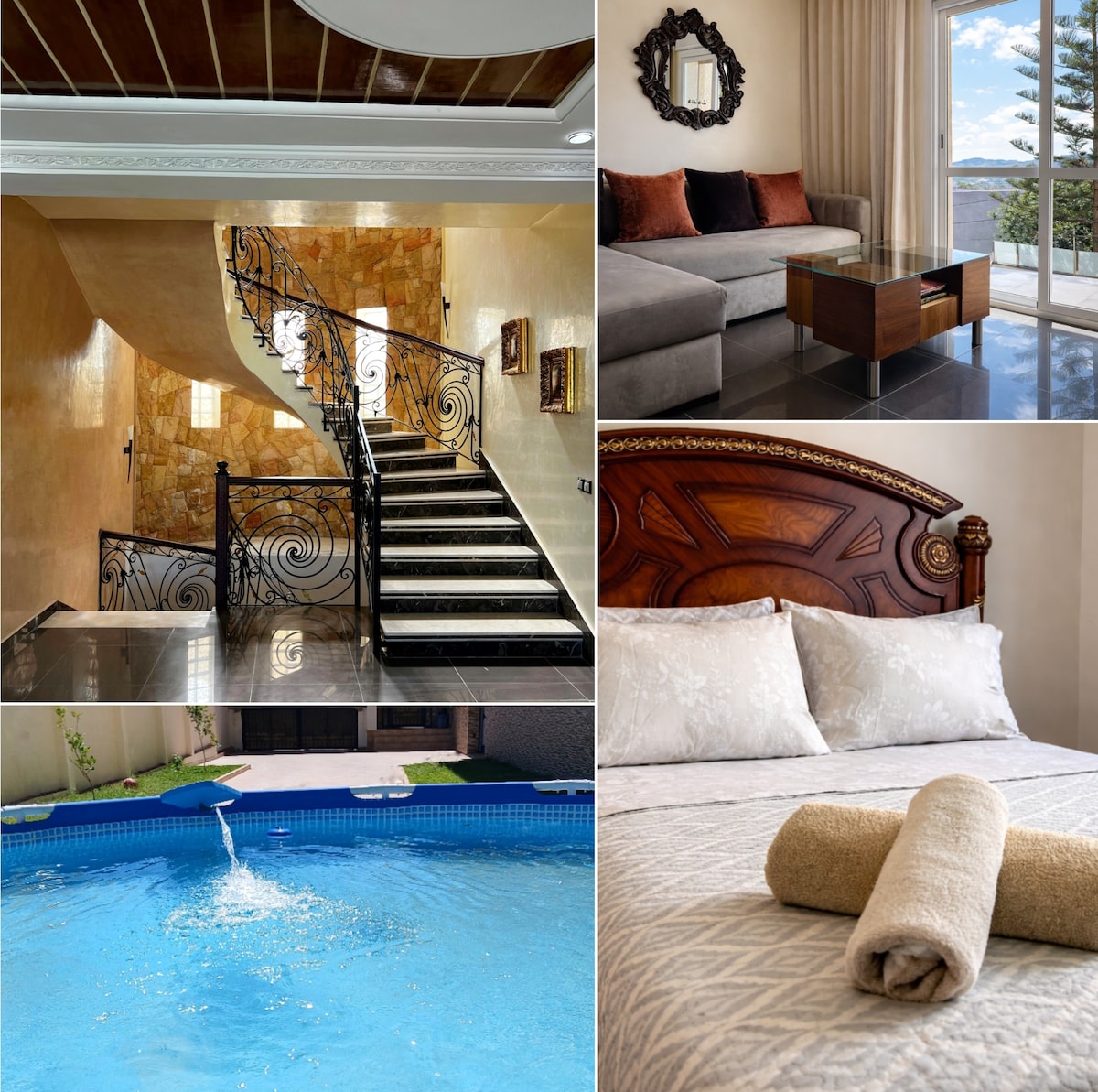 Villa moderne de 3000 m² avec grand jardin et piscine privée. Idéale pour familles ou groupes : 5 chambres, 3 salons avec canapés-lits, 5 salles de bain neuves, 2 cuisines équipées. Emplacement stratégique à 400 m de La Cassia et des restaurants, sur la route d’IKEA. Tout est neuf, spacieux et parfaitement équipé pour un séjour confortable et inoubliable. Veuillez bien noter que la piscine est pour les adultes 190m de profondeur