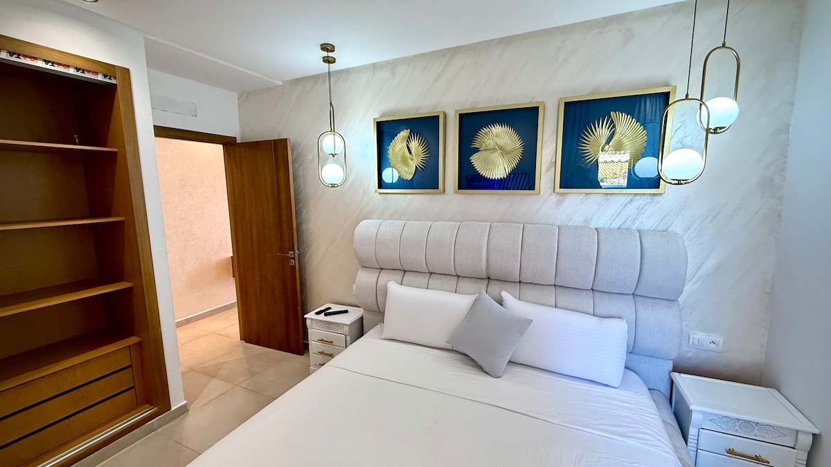 Welcome to Marine Escape, a luxury apartment just 2 minutes from the golden sands of Martil Beach. Nestled in the secure Costa Mar residence, this stylish getaway offers 2 bright bedrooms, 2 private balconies with panoramic views, 3 refreshing pools, and underground parking. What you’ll love: • Cozy living room, WiFi & Smart TV • Fully equipped kitchen (coffee maker, microwave...) • 2 Quiet bedrooms with comfortable bedding • Modern bathroom & linens provided • Self check-in •24/7 Security