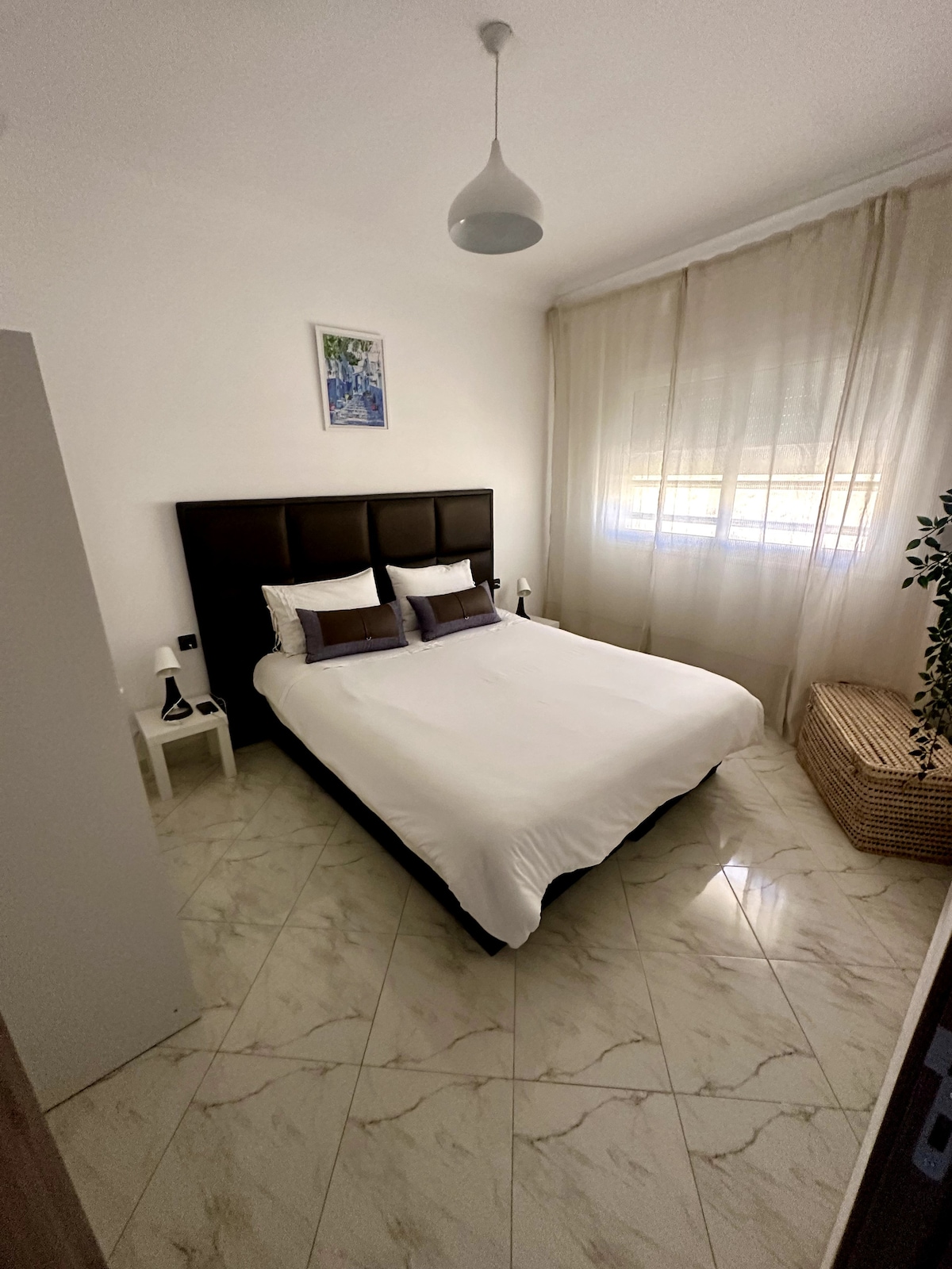 Looking for a peaceful and stylish place to unwind? This ground-floor apartment, fully renovated with luxury finishes, is ideal. It features: A spacious bedroom (we provide 2 floor mattresses for extra guests or relaxation) Modern bathroom Fully equipped kitchen Living room Just 7 minutes from the beach and 12 from Tétouan airport. Perfect for an unforgettable holiday on the M'diq coast!