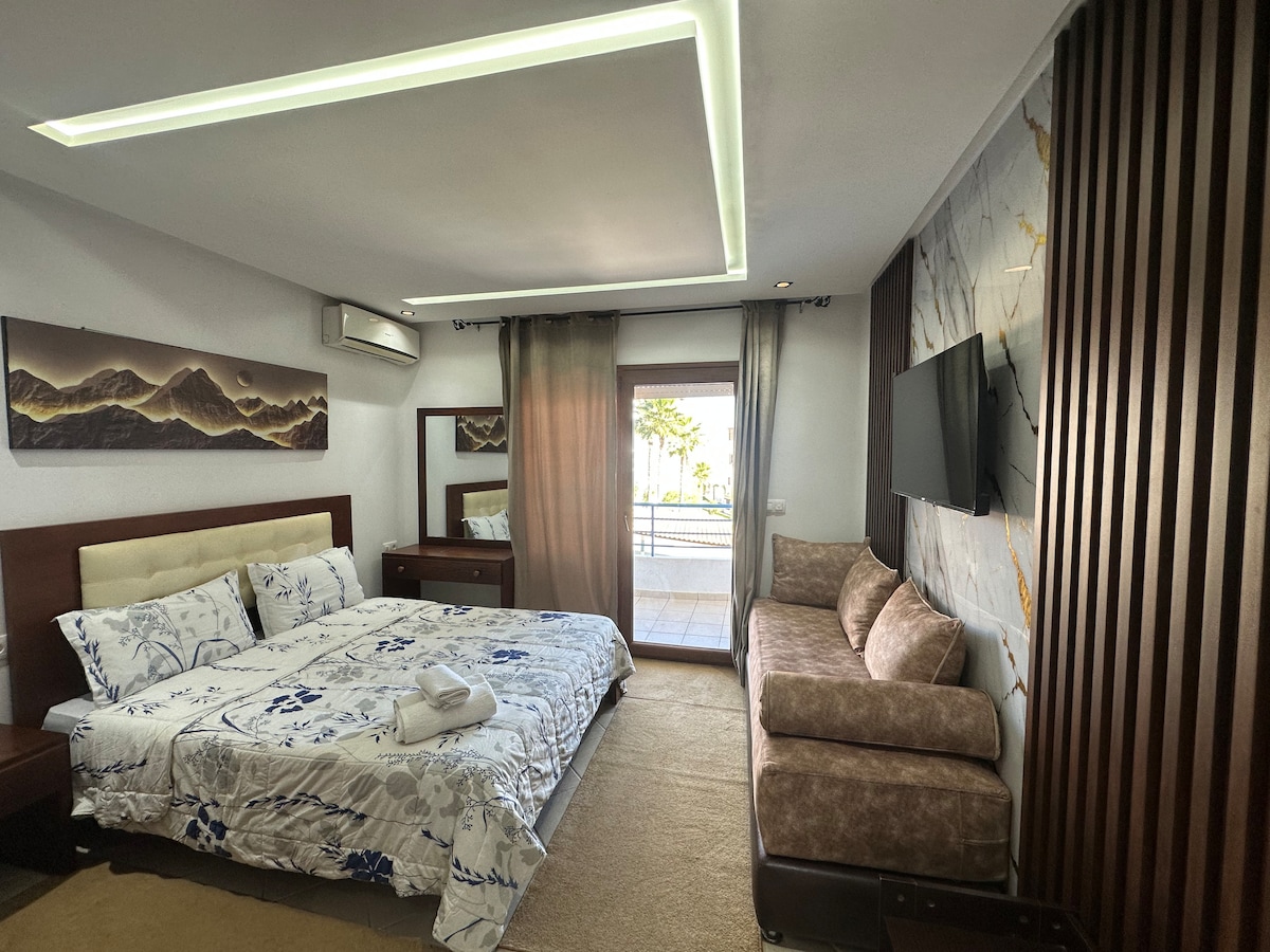 Situé au 4ᵉ étag [avec ascenseur]d’une résidence sécurisée 24h/24, cet appart moderne offre une vue imprenable sur la montagne et la rivière,sansvis-à-vis. parking privé gratuit et Wi-Fi rapide/Netflix/IPTV , il garantit confort et tranquillité. Profitez d’une gr. terrasse publique où les enfants peuvent jouer en toute sécurité. Idéalement situé, il se trouve à quelques minutes à pied de l’Ancienne Médina, de Plassa Primo, de l’Église et de nombreux restaurants et commerces. jamila hospitality .