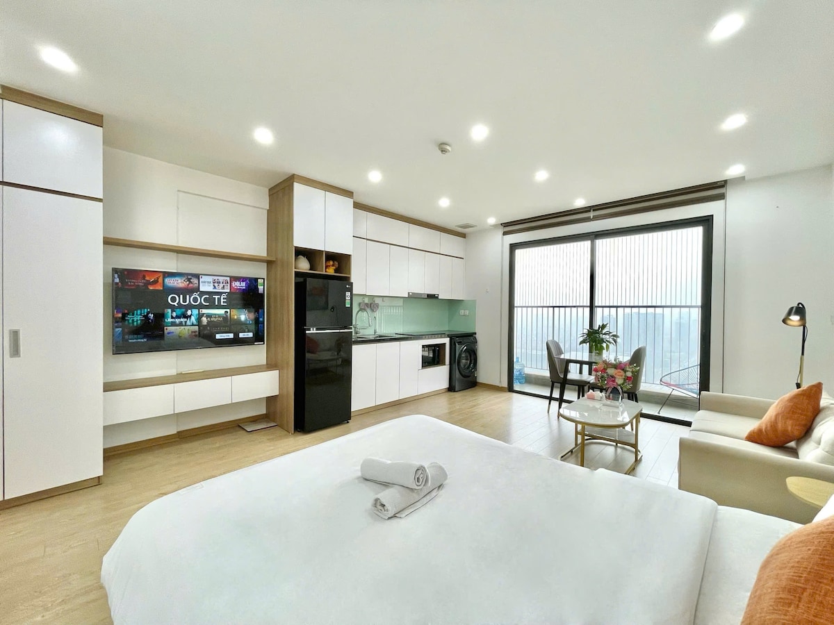 [Free Gym and Pool for long stay from 14 nights] Dear my loved guest! My fully furnished studio apartment is designed to clients who plan to travel or have a business trip in Hanoi. Vinhomes green Bay is the combination of luxury and high-class living space with full of utilities where you can enjoy to the fullest. It is opposite National Conference Center & JW Marriott Hotel, only 30 minutes from the Noi Bai International Airport by taxi.