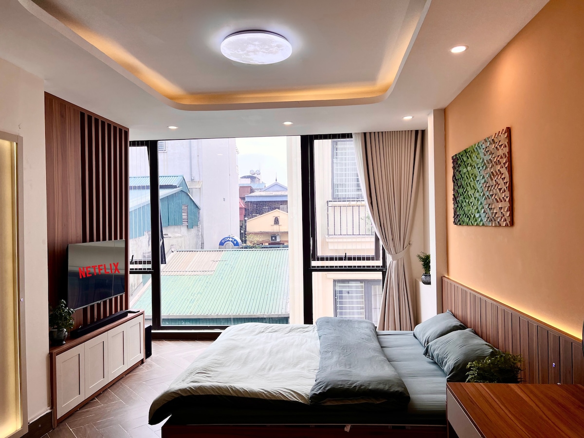 Căn Hộ cao cấp được thiết kế với phong cách hiện đại, tiện nghi tại khu vực trung tâm của Hà Nội, nơi bạn có thể dễ dàng mua sắm tại TT Vincom hoành tráng, ăn uống tại các nhà hàng, quán ăn, cafe cực kì ngon chỉ trong vòng 5-10ph đi bộ. Chúng tôi luôn giữ sạch sẽ và thơm tho tại căn hộ cao cấp của mình. +Ban công với view cao. Bạn có thể tận hưởng kỳ nghĩ của mình một cách lãng mạn nhất cùng với những bộ phim được chiếu trên Tivi màn hình rộng và được cài đặt sẵn Netflix