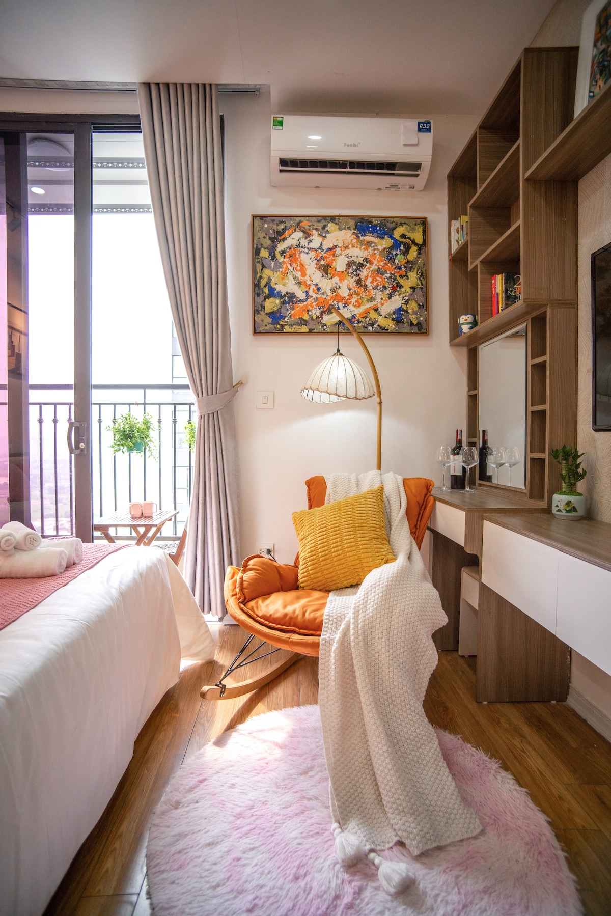 The apartment is located in the high-class apartment complex Vinhomes Greenbay Me Tri, 400 Luong The Vinh, Nam Tu Liem, Hanoi. The location is very close to the national administrative center, Grand Plaza, Korean Embassy, My Dinh Stadium,... The usable area of the Studio is 30 m2, including 1 bathroom, 1 double bed. , kitchen with refrigerator, induction cooker, microwave.. Besides, there is swimming pool, gym, playground for children. Therefore, you will feel very peaceful, safe and comfortab