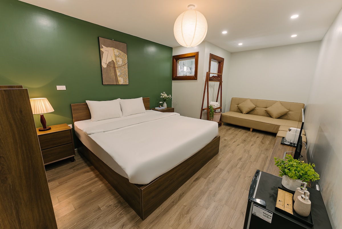 With a blend of contemporary comfort and traditional charm, our 4-star hotel is nestled in the heart of Hanoi's historic Old Quarter. Our Deluxe Room with Balcony offers a luxurious escape, featuring a spacious interior with a comfortable king-sized bed and modern amenities. A private balcony to enjoy panoramic views of Hanoi’s charming Old Quarter, making it the perfect spot to unwind after a day of exploration.