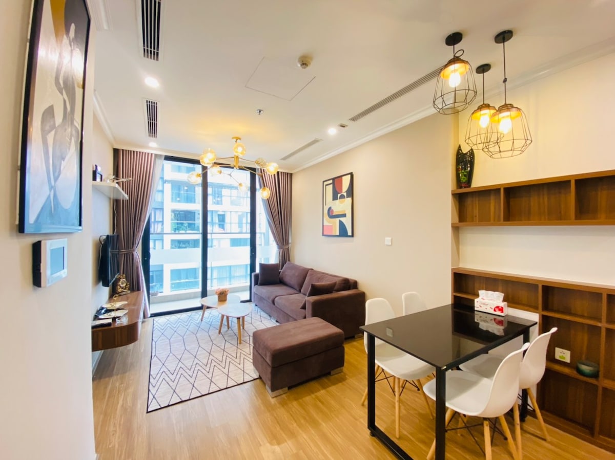High-end apartment at Vinhomes Smart City with full amenities for couples, tourists or business travelers. Here you will rest and relax in a peaceful, luxurious space. Utilities include: 1. Indoor swimming pool 2. Outdoor swimming pool (seasonal) 3. Gym 4. Working Space 5. Shopping and entertainment at Vincom Mega Mall. 6. Check-in and take virtual photos at Japanese Garden 7. Stroll between the blue sea and white sand in the heart of Hanoi. 8. BBQ Party