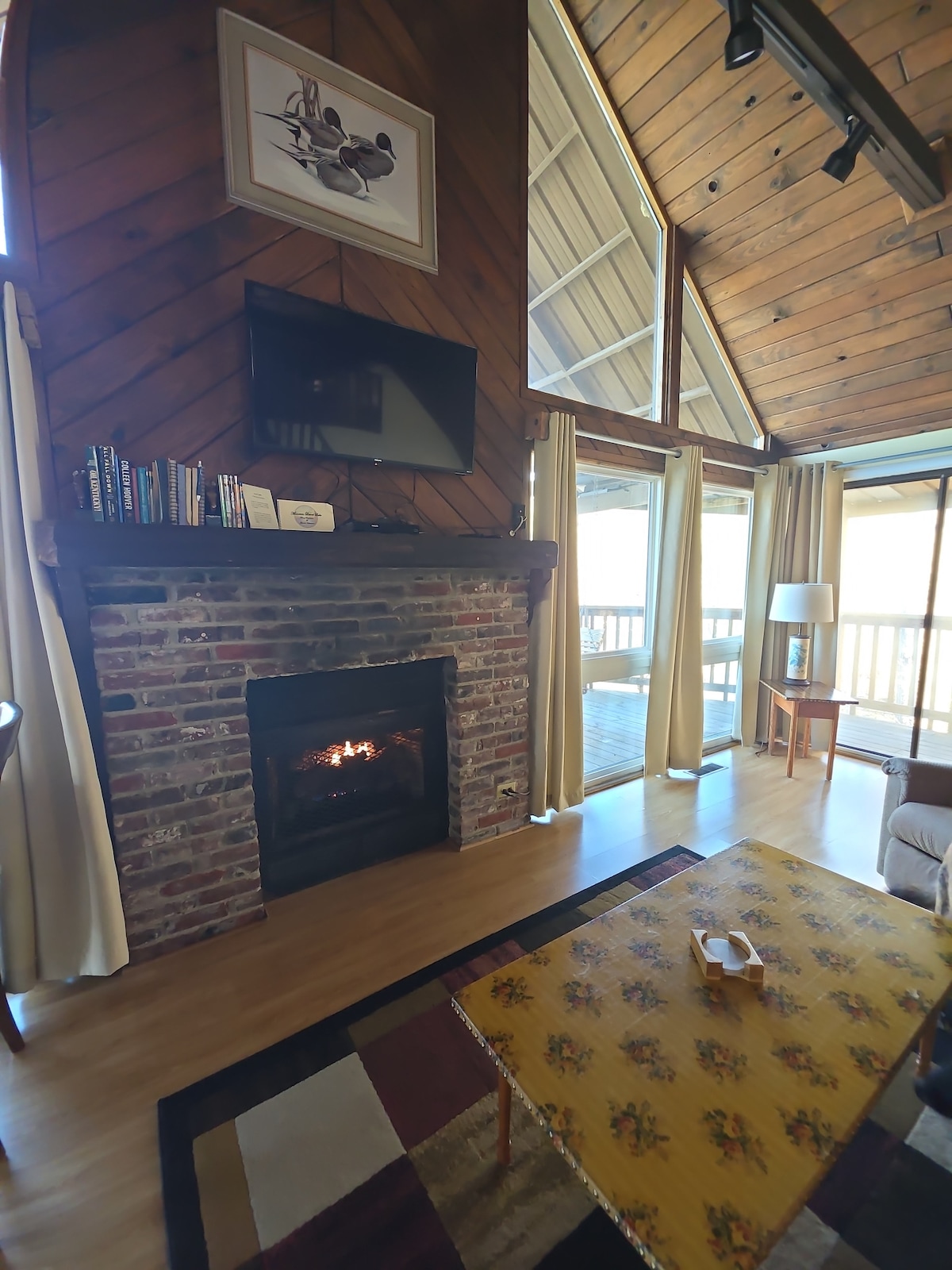 A nicely appointed lake house with rustic contemporary decor. Gourmet kitchen includes dishes, cookware and small appliances as well as a deluxe espresso/cappuccino maker. House is located in a gated, private community with a 320 acre lake up to 70 ft deep. Only pontoon boats and fishing boats permitted, ensuring a quiet lake experience and wake-free dock sitting. Two kayaks, canoe, paddle board and some basic fishing equipment for guest use. Pontoon rental by owner - separate contract.
