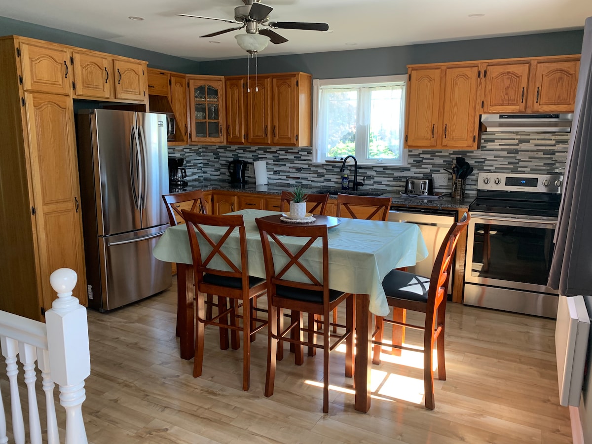 Bright and spacious. Completely renovated two-storey duplex just 10 minutes from Charlottetown. Renovations include bathrooms(1.5), paint, flooring, lighting and electrical, bedroom suites and furniture. 3 bedrooms upstairs: two queen, one bunk bed. Upgraded kitchen and dining room, featuring all new appliances. TV's (3) with Netflix. Private driveway and entry. Private deck with patio set and barbecue. Small backyard bordering onto beautiful Lowther Park featuring playground and soccer field.